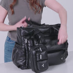 Crafted with a quilted design and eco-conscious 100% recycled polyester lining. The modern exterior features discreet zipper pockets for quick yet secure access to essentials like your phone, passport, or wallet, while dual side pockets accommodate water bottles up to 32 oz.